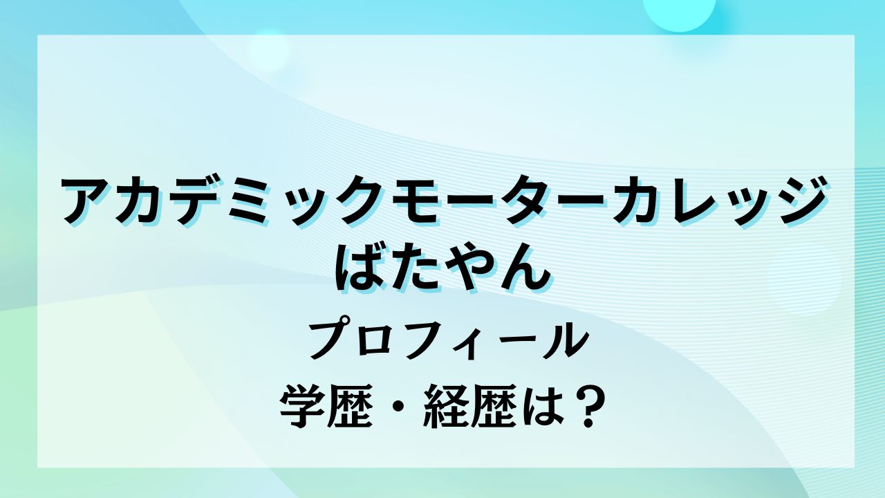 この記事では、アカデミックモーターカレッジ・ばたやんは何者なのか、プロフィールや経歴、学歴について詳しくご紹介していきます。